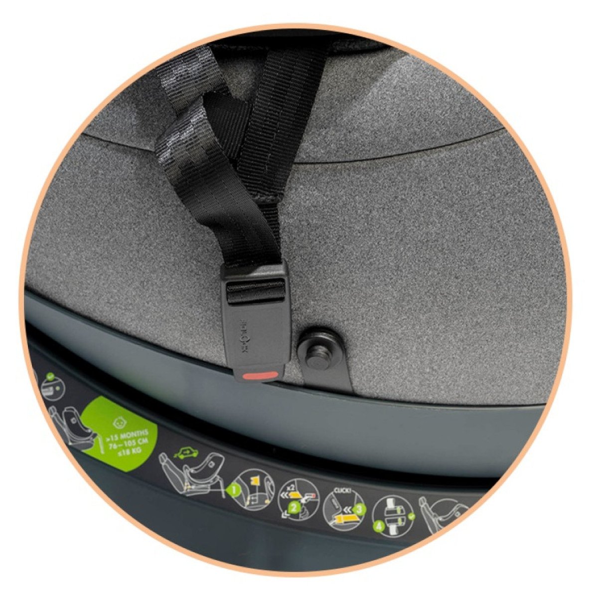 Корпус выполнен из современного EPP-материала, который эффективно поглощает энергию удара. Дополнительная система боковой защиты Side Impact Buddy снижает нагрузку при столкновении и усиливает безопасность. Кресло можно устанавливать как по ходу движения, так и против него, подбирая оптимальный вариант с учётом потребностей ребёнка.
