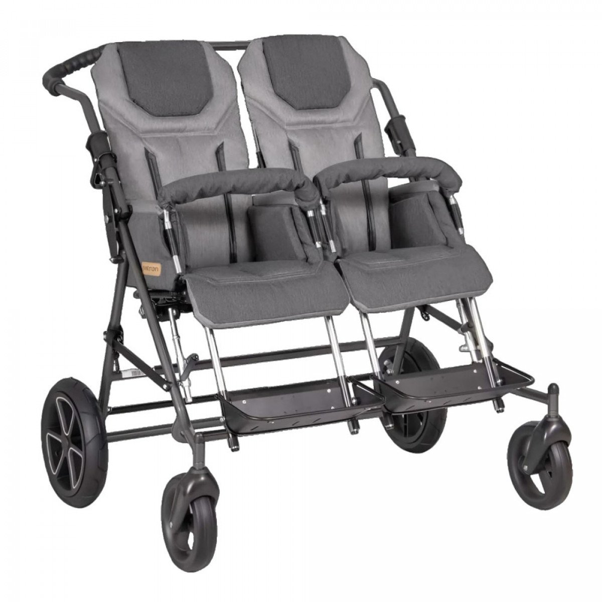 Есть возможность регулировать ручку для сопровождающего, снимать подножки и защитную дугу с каждого сиденья. Конструкция кресла и лёгкость настроек позволяет создавать максимально комфортные условия для каждого из детей.