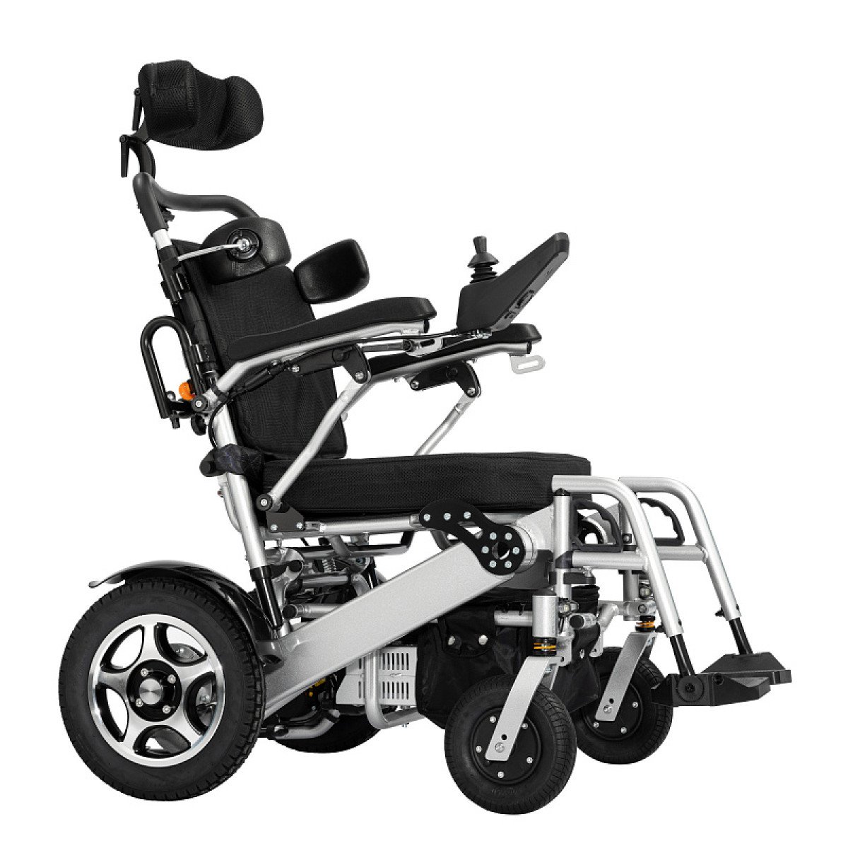Регулируемая по жёсткости пружинная подвеска сиденья, а также амортизаторы передних колёс, защищают позвоночник пользователя от резких толчков и эффективно гасят вибрации во время движения. Плавность хода позволяет безболезненно перемещаться как по городским дорогам, так и по грунтовым поверхностям.