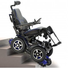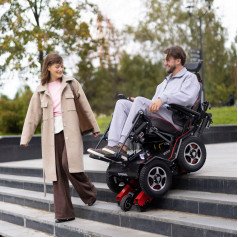 В базовой комплектации коляска оснащена удобным пультом с LCD-дисплеем, а встроенные гироскопы автоматически удерживают пользователя в горизонтальном положении, корректируя угол наклона кресла при движении по лестнице. Специальный алгоритм стабилизации выравнивает коляску при перекосах и предотвращает её перевод в опасное положение. Электромагнитные тормоза гарантируют полную остановку и безопасность даже при внезапной потере питания.