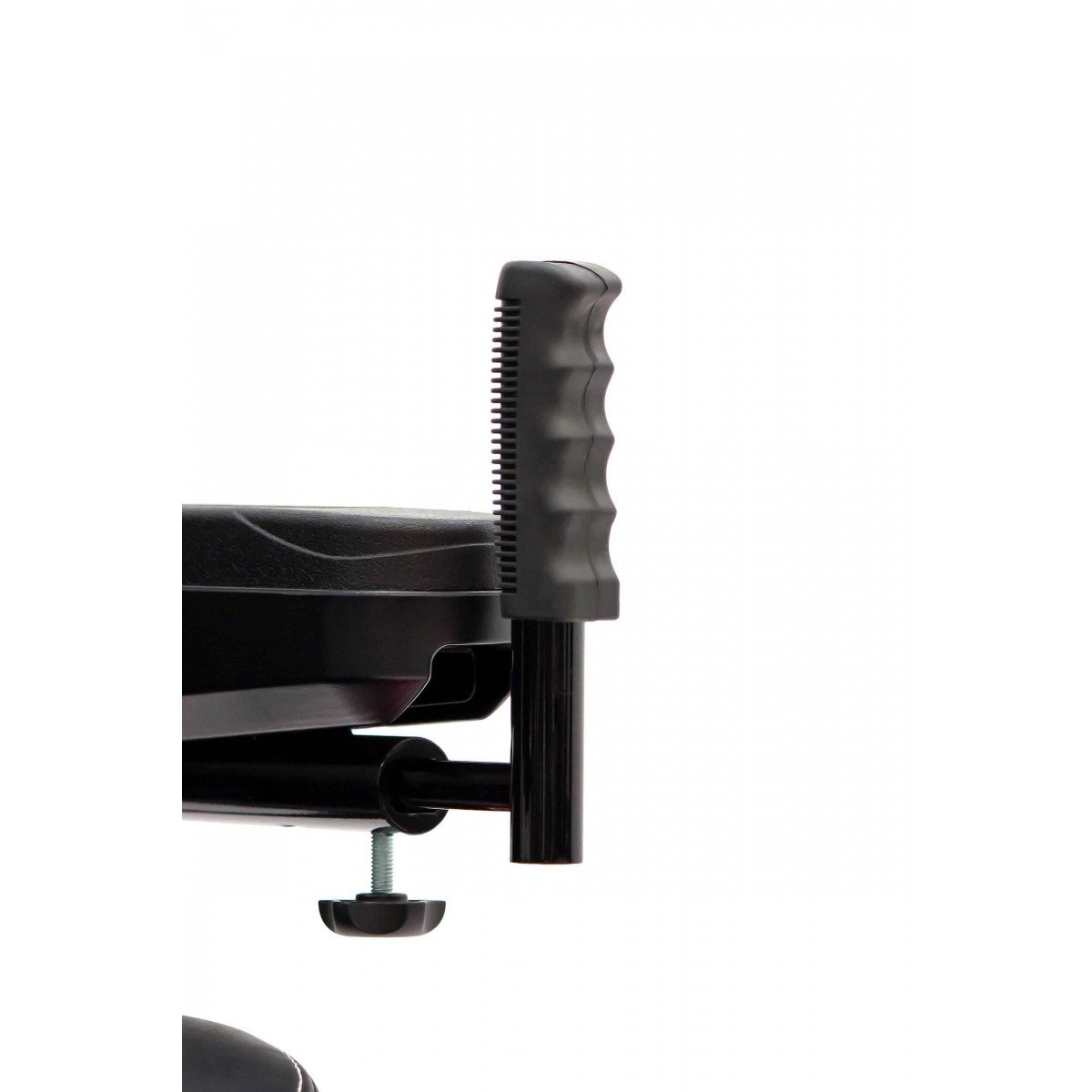 Сиденье автомобильного типа выполнено в обивке из качественной экокожи. Плотное ППУ-наполнение с анатомичной формой поддерживает комфорт даже при длительном использовании. Спинка складывается к сиденью для более компактного хранения, подлокотники регулируются по ширине и откидываются, подголовник настраивается по высоте. Единая подножка регулируется по вылету, а форма спинки с боковыми поддержками помогает сохранять правильную осанку.