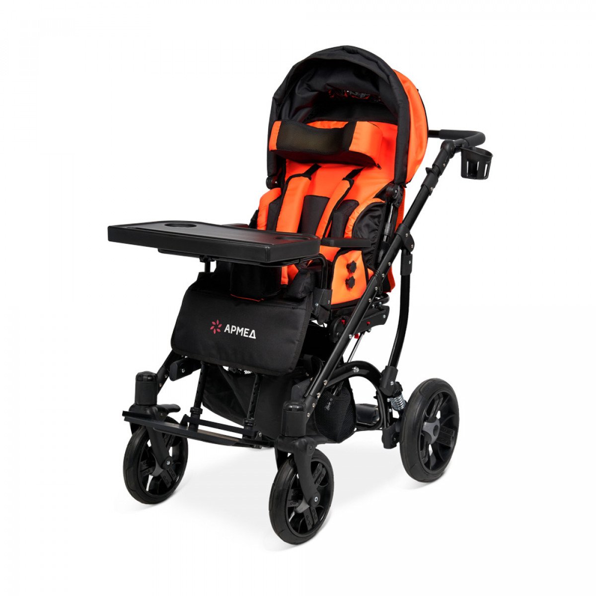Армед Эвита Нео — современная коляска российского производства, разработанная для ежедневного ухода и прогулок с детьми с ДЦП и другими двигательными нарушениями. Она сочетает комфорт, безопасность и компактность: лёгкая складная рама, съёмные колёса и манёвренные передние колёсики упрощают хранение и транспортировку, а пневматические шины обеспечивают мягкий ход по любым дорогам.
