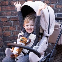 Амортизированные колёса большого диаметра обеспечивают плавный ход даже на неровных поверхностях. Передние колёса можно зафиксировать, что особенно важно при прогулках по паркам, плитке или песку.