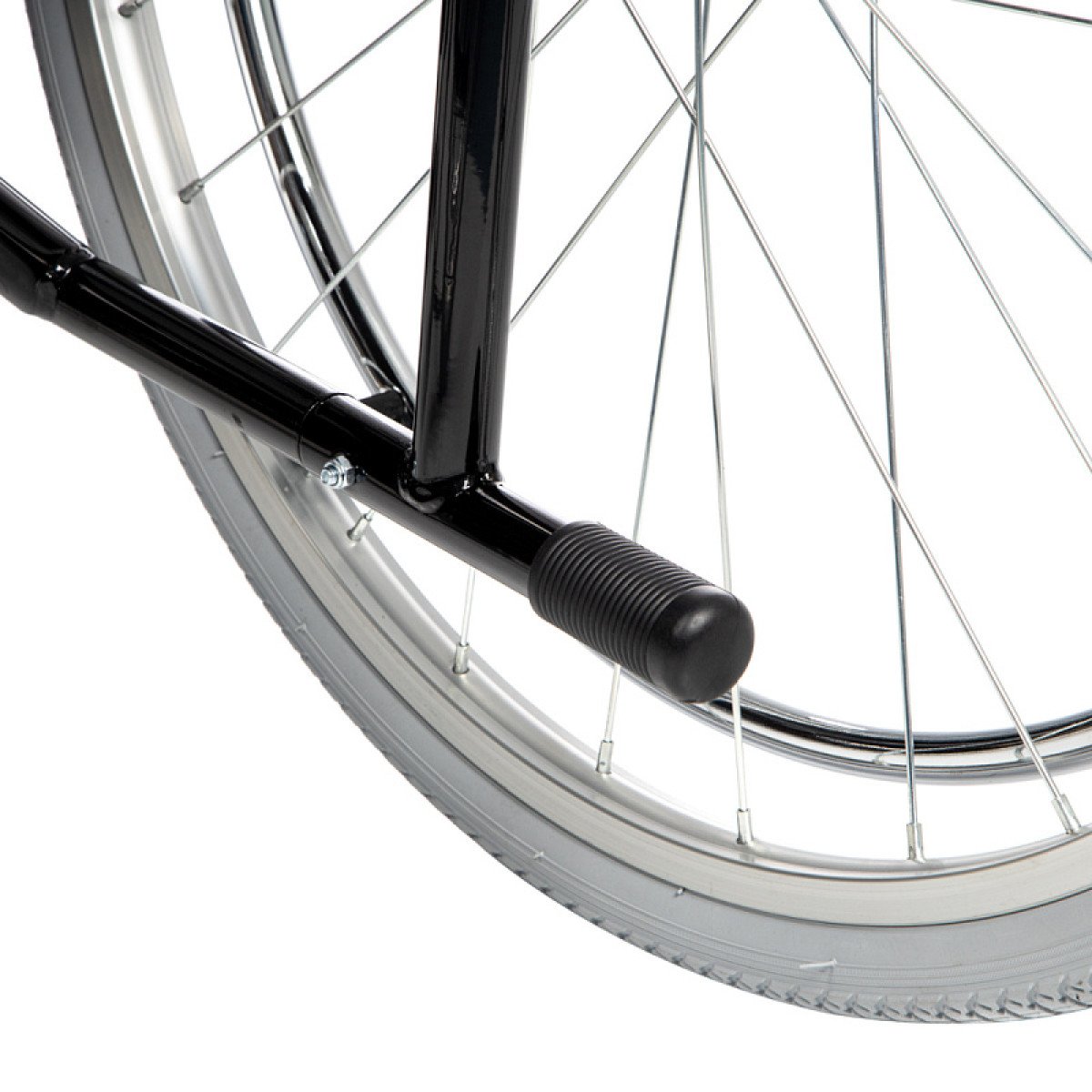 Коляска легко складывается без инструментов, а быстросъёмные задние колёса позволяют быстро подготовить её к транспортировке. Ручные стояночные тормоза обеспечивают фиксацию при остановке и делают пересаживание безопаснее. Для сопровождающего предусмотрены упоры, которые помогают преодолевать небольшие препятствия.