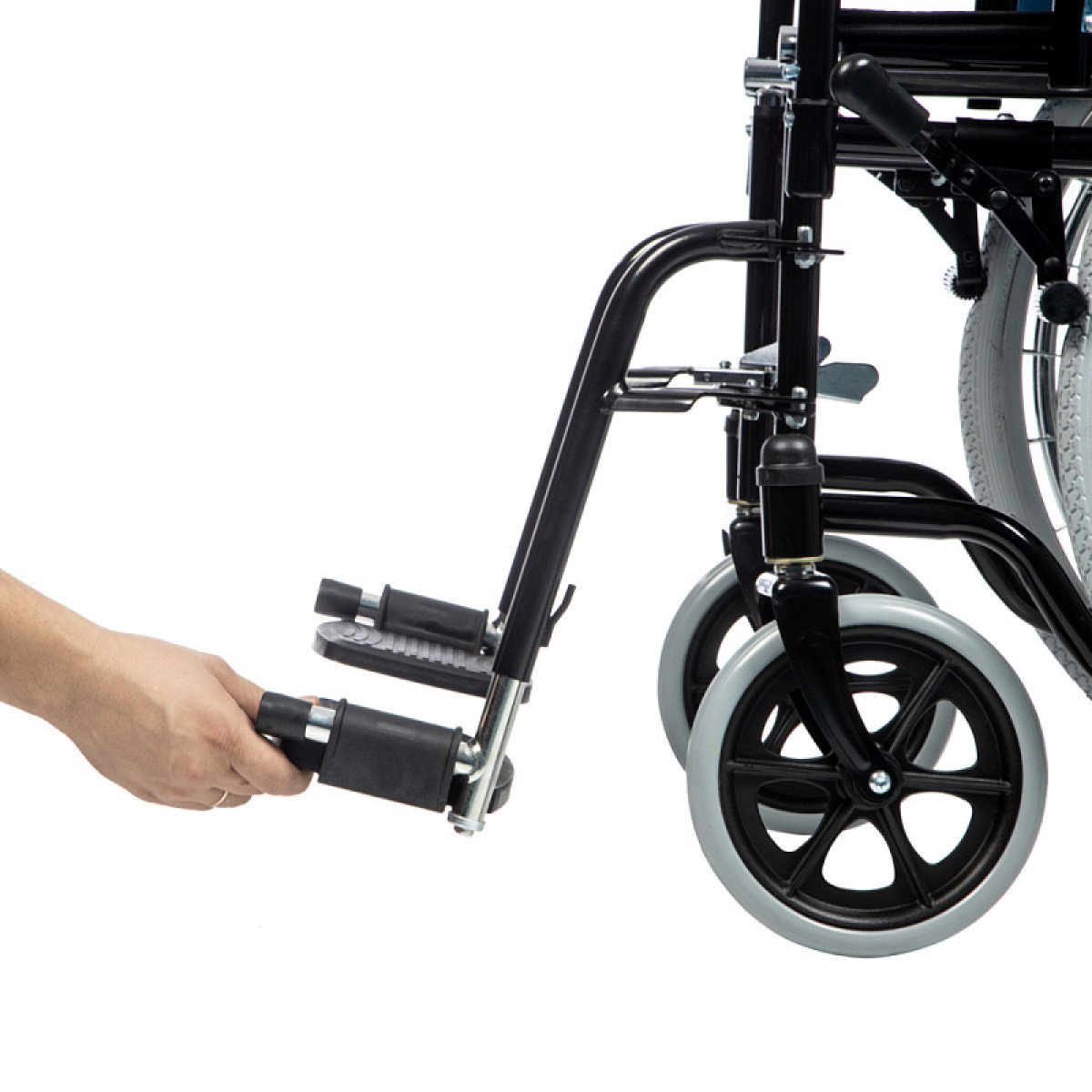 Подножки регулируются по высоте, отводятся в стороны или снимаются при необходимости. Съёмные подлокотники имеют удобную форму, позволяющую подъезжать вплотную к столу и облегчать пересадку.