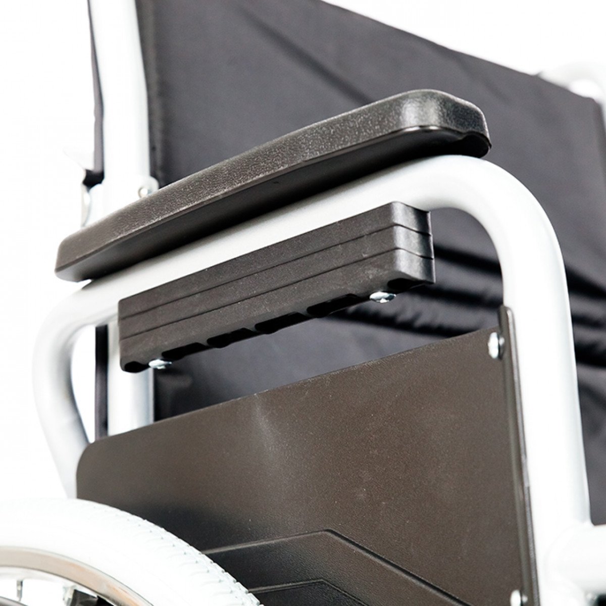 Коляска легко адаптируется под пользователя: подлокотники регулируются по высоте с помощью проставок, при необходимости откидываются или снимаются для удобного пересаживания. Подножки также снимаются или откидываются, а раздельные опоры для стоп помогают правильно разместить ноги. Сиденье можно настроить по высоте, что упрощает подбор посадки под рост и задачи пользователя. Складная конструкция позволяет быстро сложить Alpha Luxe 103 без инструментов и сэкономить место при хранении или перевозке.