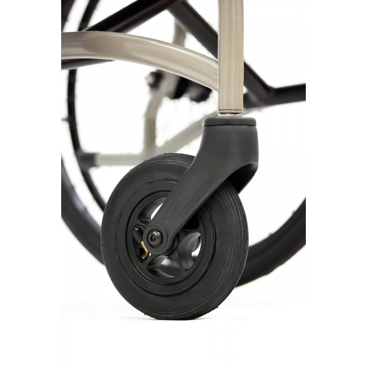 - Передние поворотные колёса с цельнорезиновыми покрышками