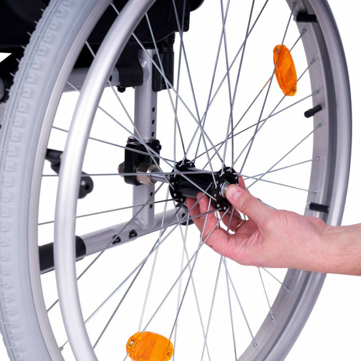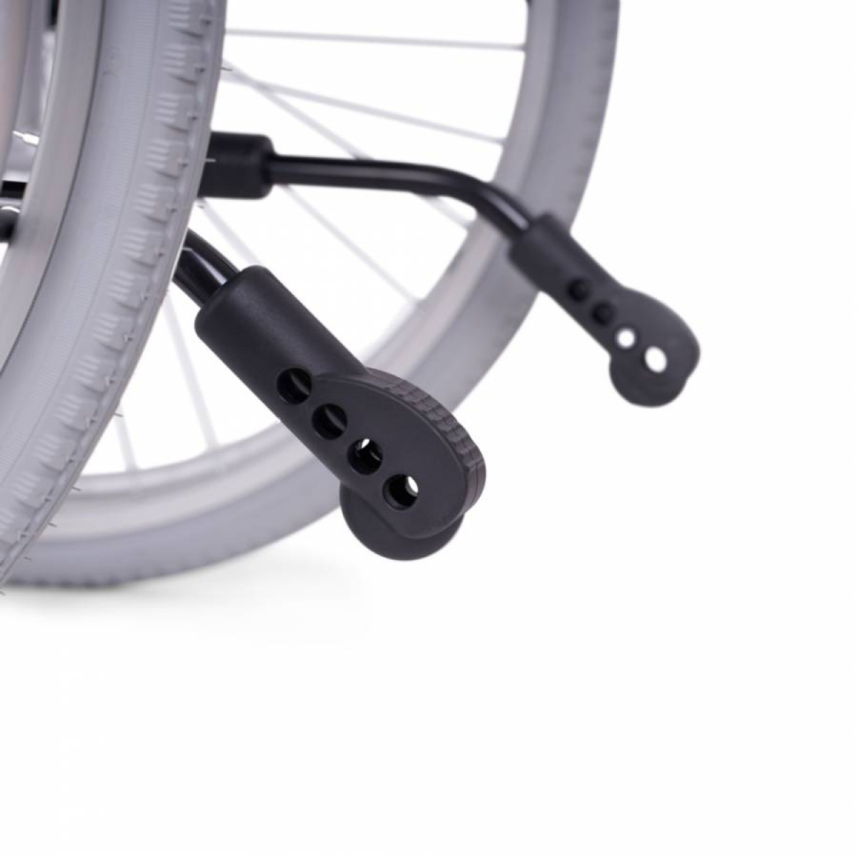 Рама выполнена из алюминиево-магниевого сплава и усилена стальной крестовиной, что обеспечивает надёжность при сравнительно небольшом весе. Литые колёса устойчивы к износу и подходят для разных покрытий. Коляска складывается для компактного хранения, оснащена ручками для сопровождающего, тормозами и антиопрокидывающими роликами для дополнительной устойчивости.