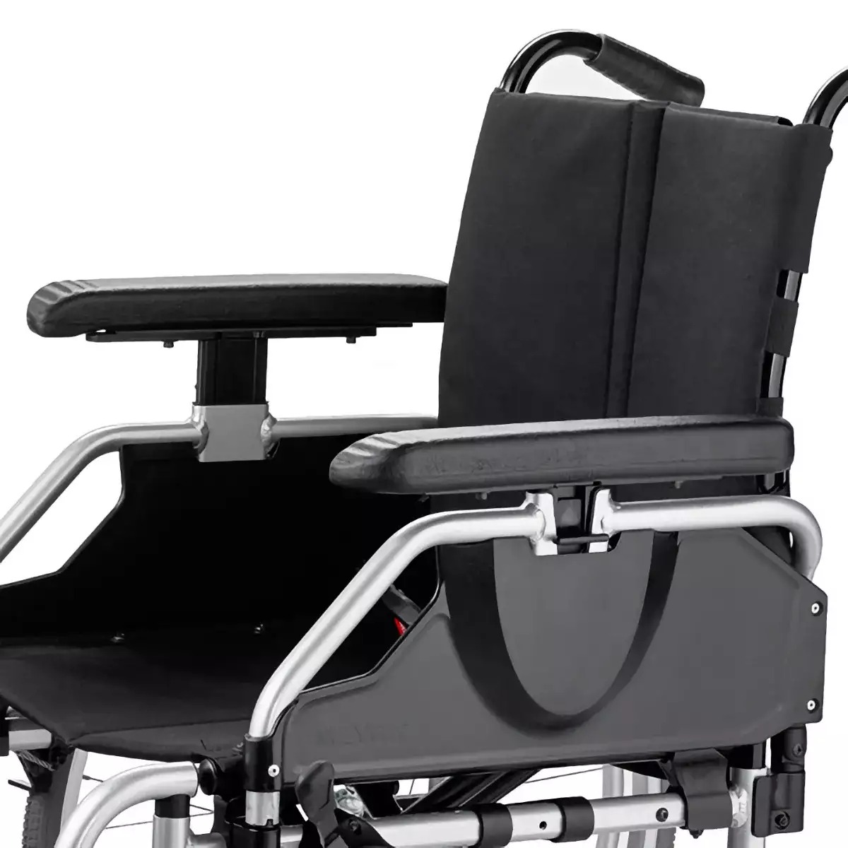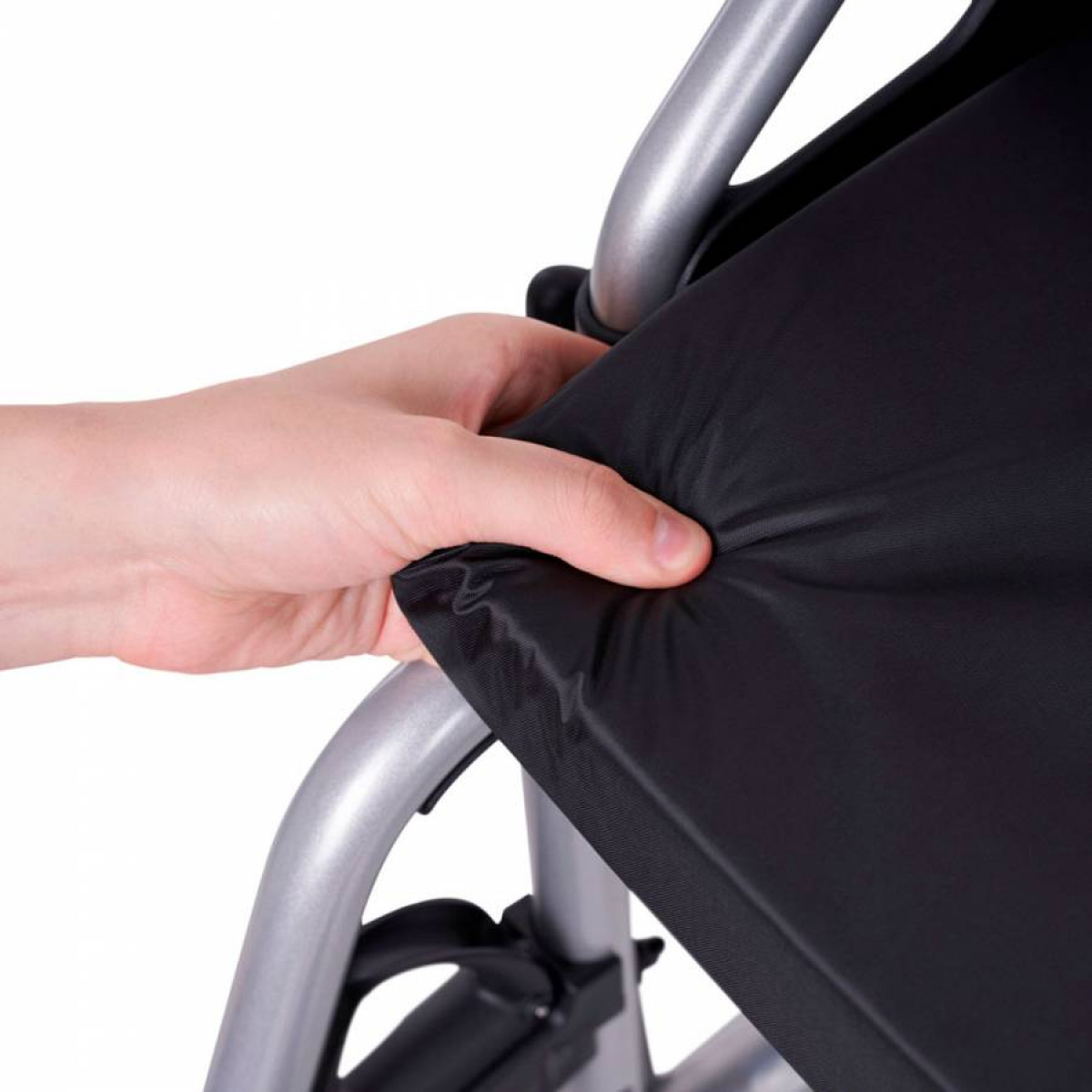 Конструкция продумана для ежедневного комфорта: анатомическая спинка с ремнями натяжения, а сиденье с мягкой подушкой поддерживает удобную посадку даже при длительном использовании. Подлокотники можно откинуть или настроить по высоте, подножки — снять или отрегулировать под пользователя. Дополнительная боковая панель облегчает пересаживание и повышает безопасность.