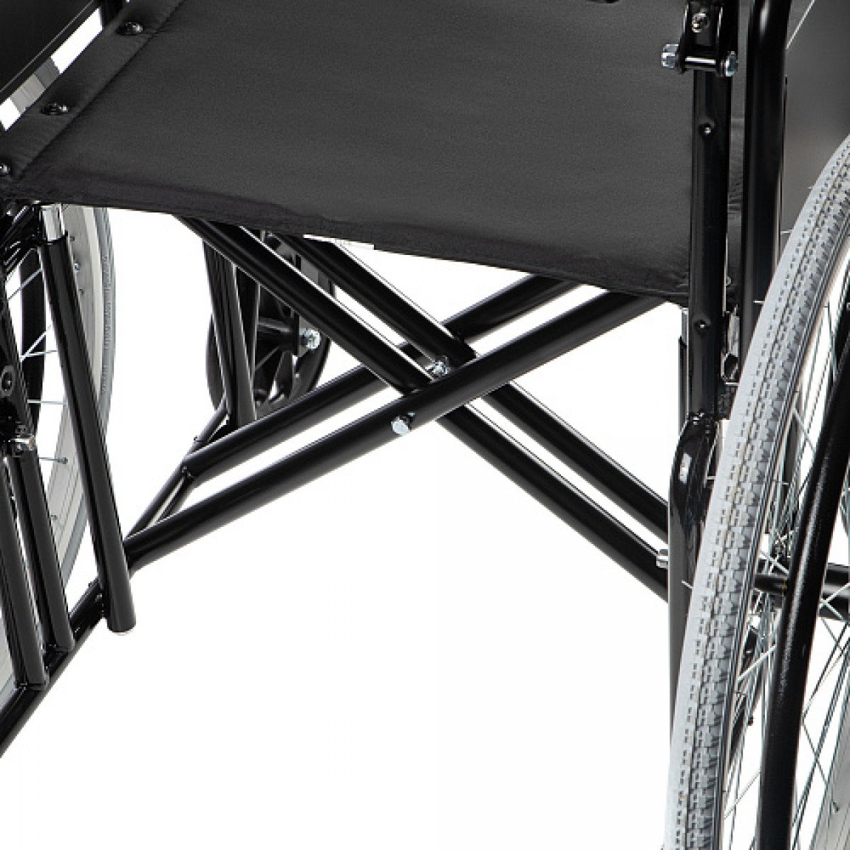 Усиленная стальная рама с двойной крестовиной обеспечивает устойчивость конструкции и выдерживает высокие нагрузки. Благодаря складной раме коляску удобно хранить и перевозить, а быстросъёмные задние колёса упрощают транспортировку.