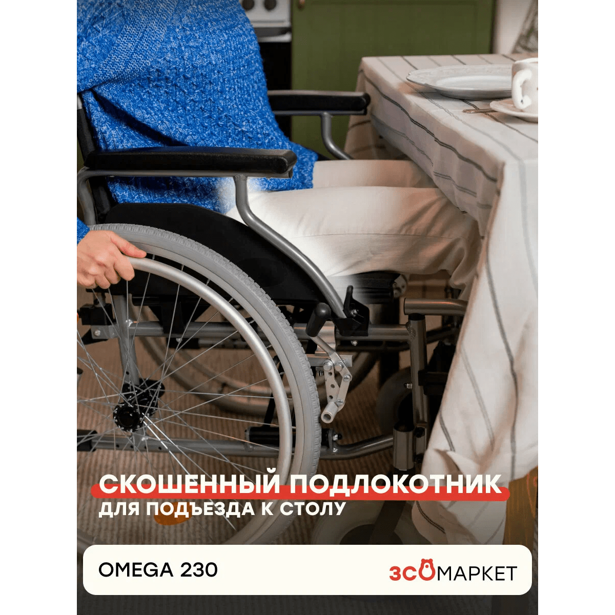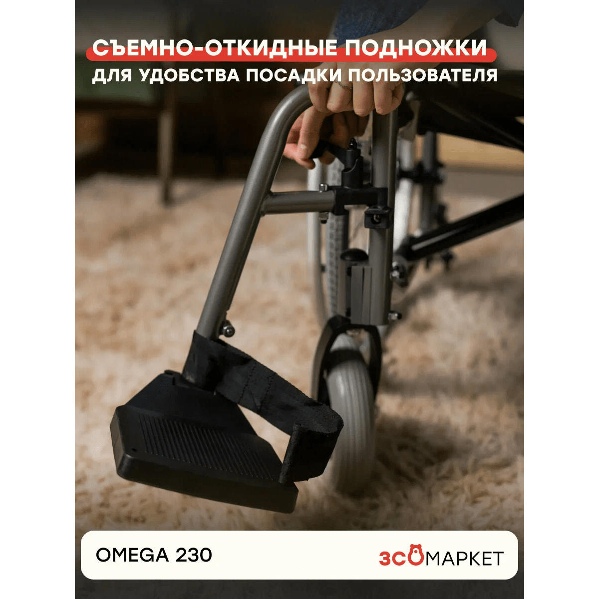 Коляска легко адаптируется под пользователя: подлокотники можно откинуть или снять, они оснащены мягкой опорой и боковой защитой. Подножки регулируются по высоте, снимаются или откидываются, что упрощает пересаживание и делает коляску компактнее при транспортировке.