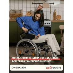 Кресло-коляска INTCO Omega 230 (Интко Омега 230) — практичная модель с ручным приводом, рассчитанная на повседневное использование в разных условиях. Подойдёт пользователям, которым важно сохранять мобильность и иметь удобный, надёжный вариант для передвижения как в помещении, так и на улице.