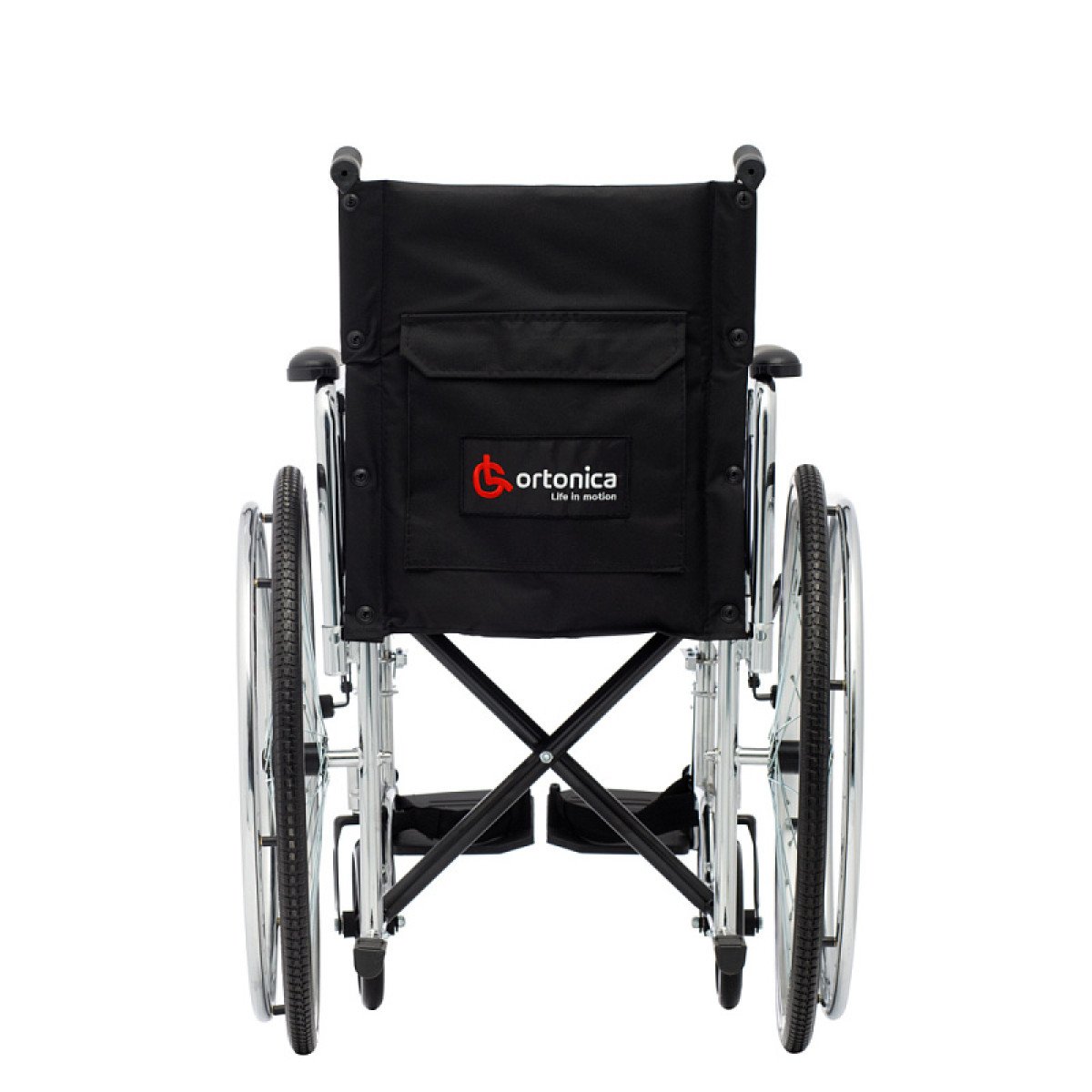 Для удобства пользователя предусмотрены съёмные подлокотники, регулируемые подножки и ручки для сопровождающего. На спинке есть карман для необходимых мелочей. Модель оптимально подходит для передвижения по ровным покрытиям и доступна в разных вариантах ширины сиденья.