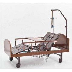 Изголовье и изножье выполнены из ламинированного ДСП с текстурой дерева, благодаря чему кровать аккуратно смотрится в домашнем интерьере. Складные металлические боковые ограждения облегчают доступ к пользователю и повышают безопасность. Функция переворачивания реализована с помощью винтовых механизмов — она позволяет менять положение тела без лишних усилий, облегчая гигиенические процедуры и ежедневный уход.