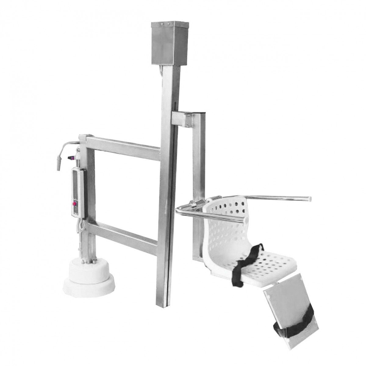 Подъёмник для бассейна Physioteсhnica (Физиотехника) вертикальный — это надёжное оборудование, которое позволяет безопасно переносить человека с ограниченной подвижностью в воду и обратно. Вертикальная траектория подъёма делает конструкцию компактной и позволяет устанавливать её даже у узких бортов бассейна. Пользователь может быть опущен на любой необходимый уровень воды, что удобно для разных видов гидротерапии.