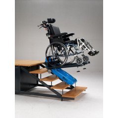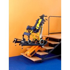 Благодаря прочным гусеницам подъёмник легко преодолевает лестницы разной конструкции, выдерживает длительные подъёмы и работает от аккумулятора без подзарядки на протяжении 23 пролётов. Конструкция оснащена усиленным штурвалом и направляющими, на которые устанавливаются платформы-пандусы, позволяющие надёжно зафиксировать коляску вне зависимости от её размера и формы. Все ключевые элементы управления — кнопки движения, индикатор наклона и аварийная остановка — находятся на руле в зоне быстрого доступа.