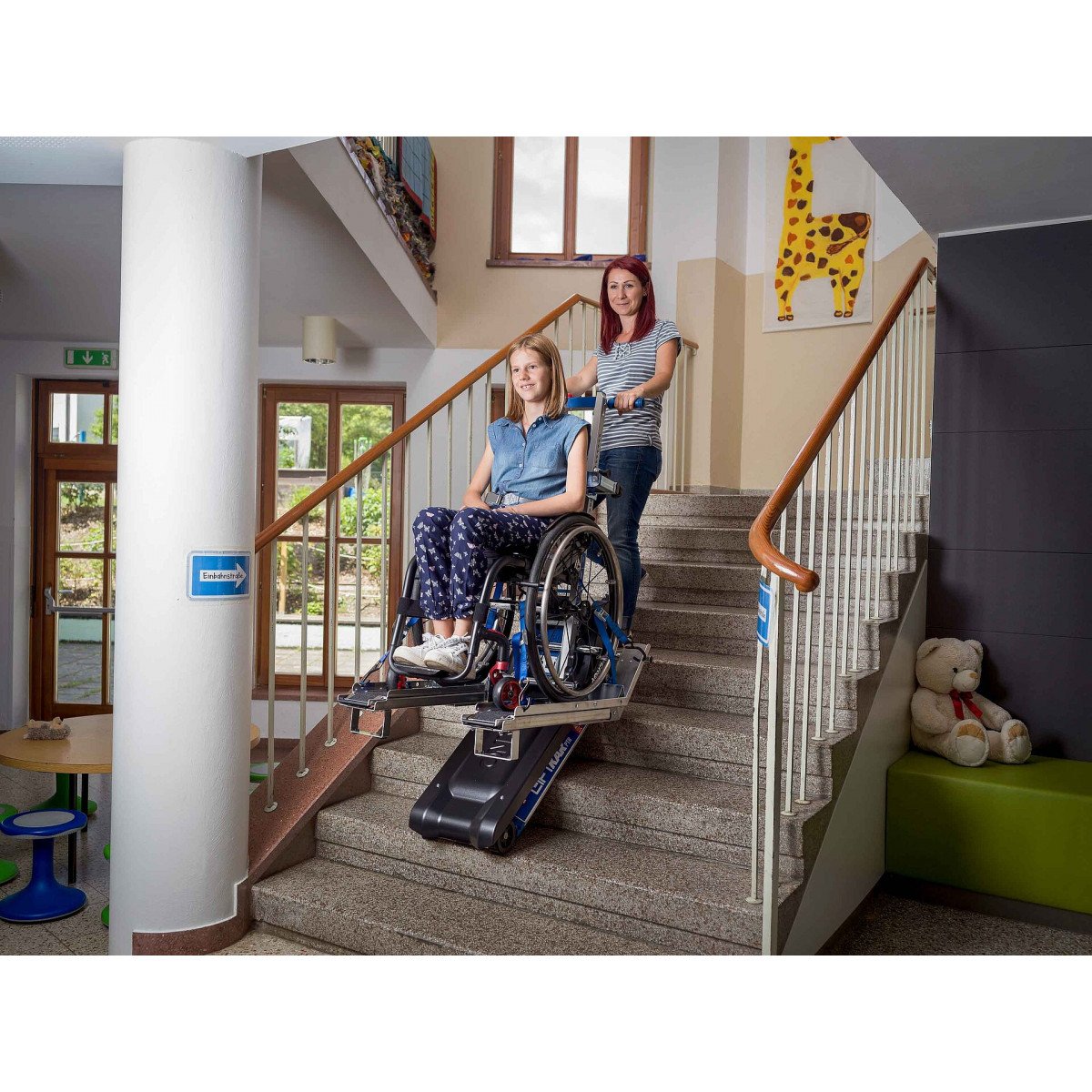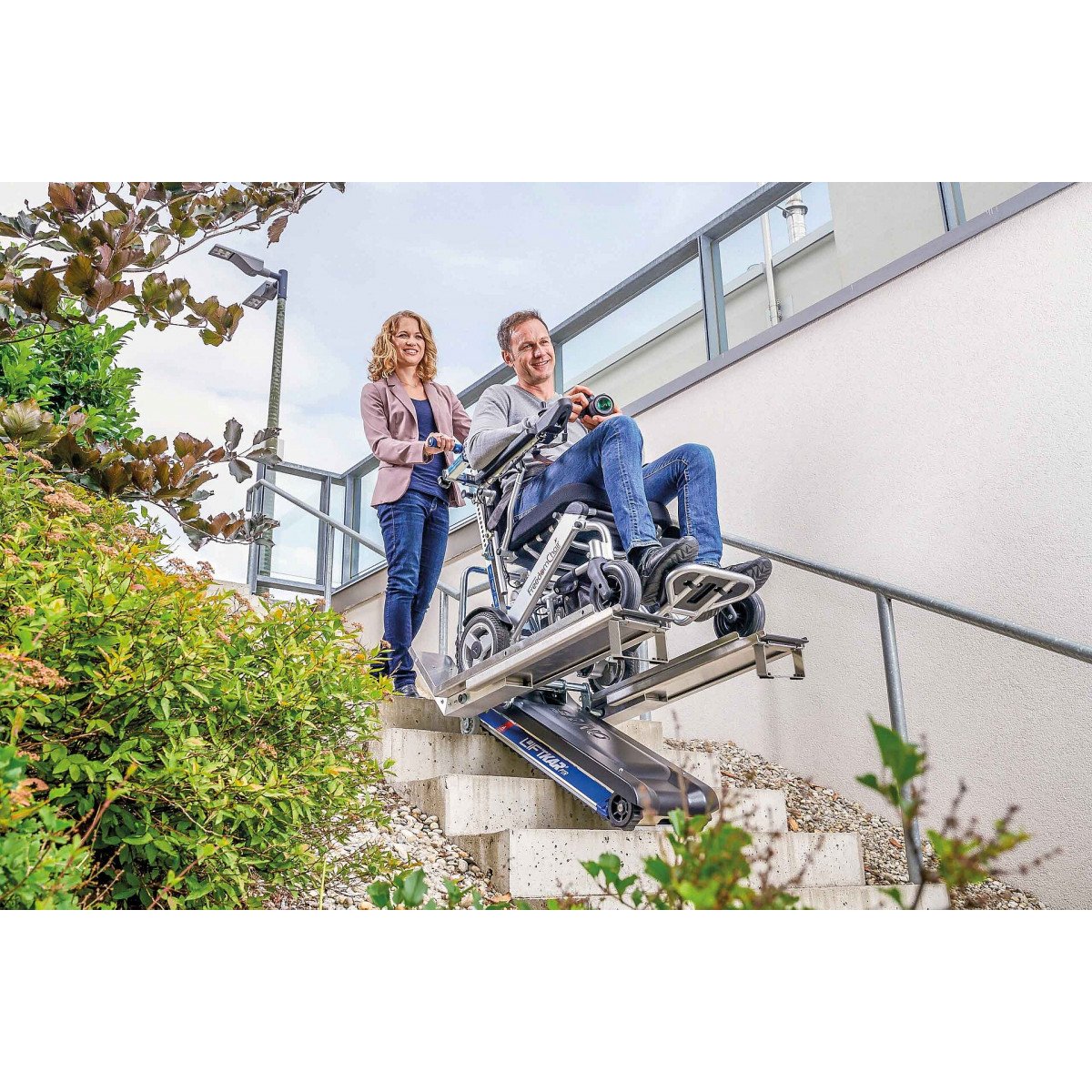 Подъёмник SANO PTR XT 160 (Сано ПиТиАр ИксТи 160) — современное устройство для безопасного подъёма и спуска людей в инвалидных колясках по лестницам. В отличие от стандартных моделей, он выполнен в виде мобильной платформы с пандусами на гусеничном ходу, благодаря чему подходит даже для тяжёлых и электрических кресел-колясок.