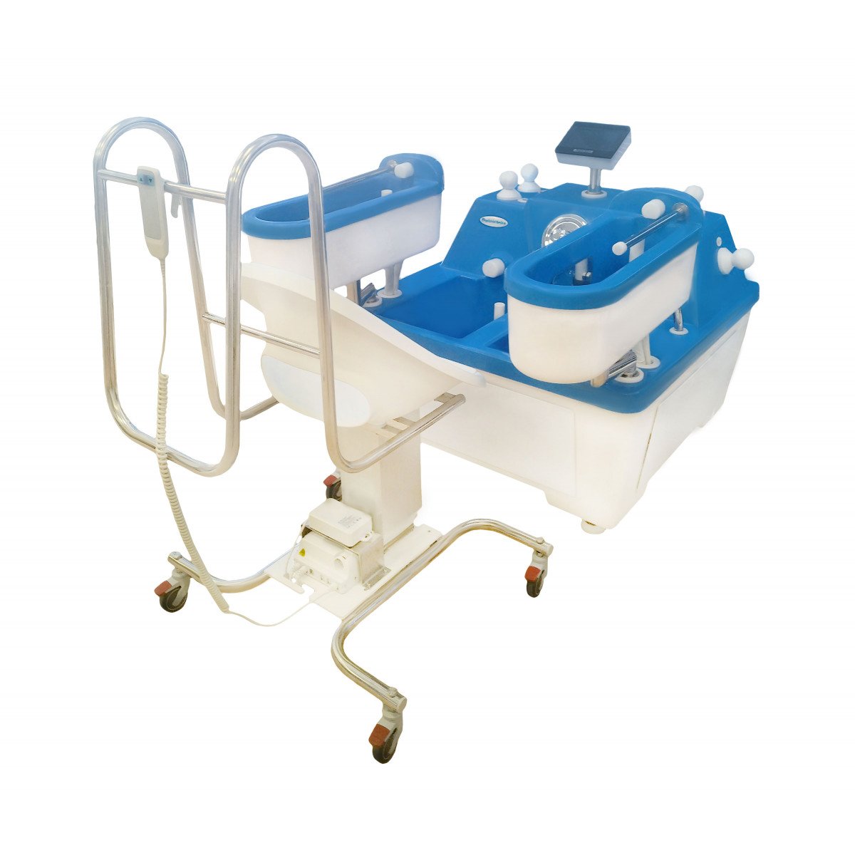 - Вертикальный подъём кресла обеспечивает точное и мягкое опускание в ванну