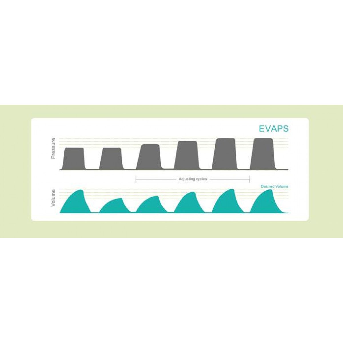 - Автоматически регулирует давление для поддержания заданного дыхательного объёма