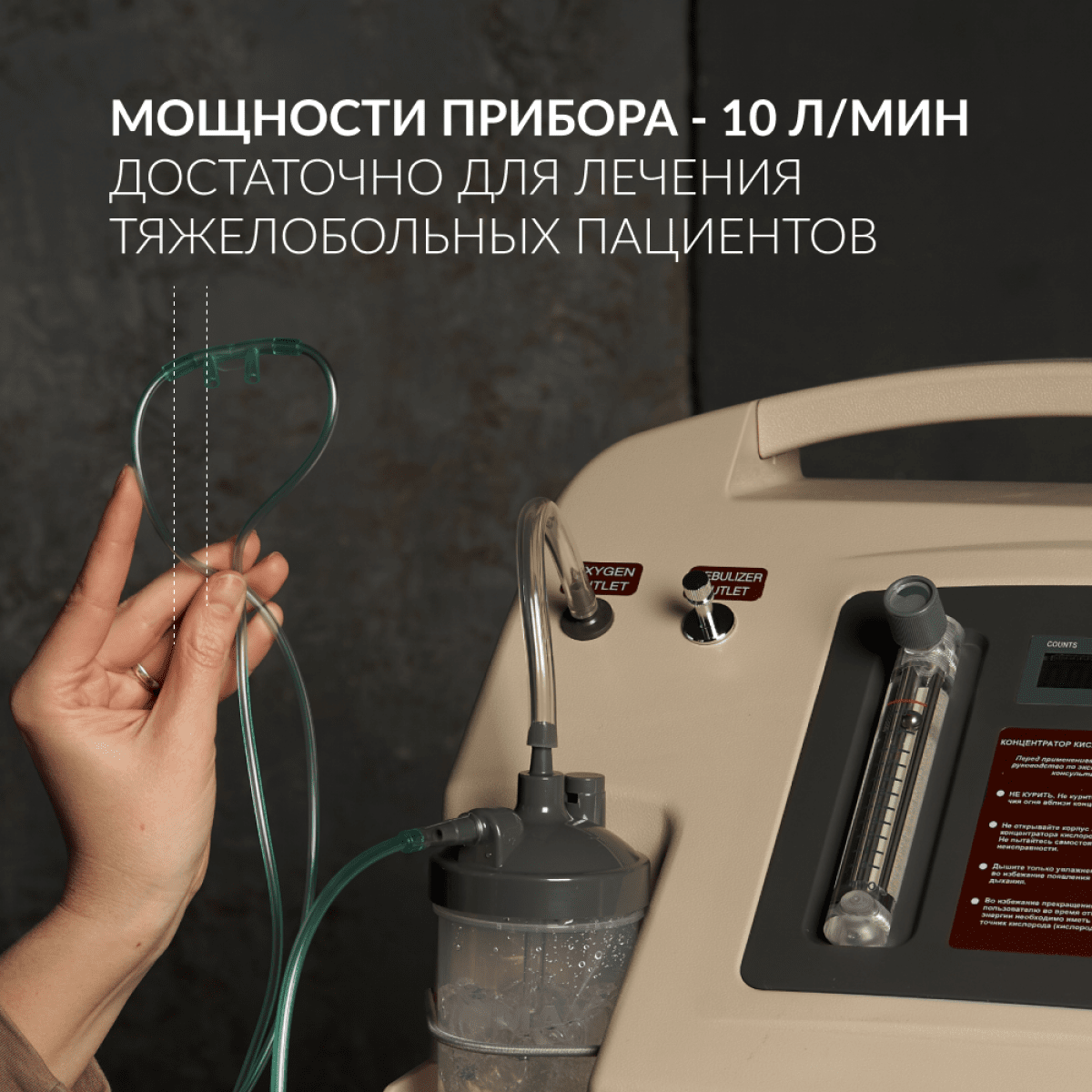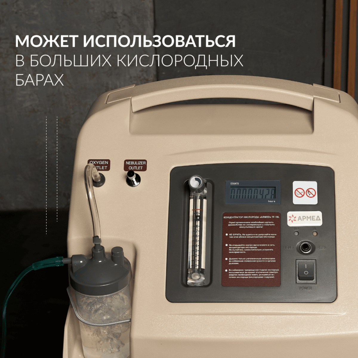 Главное конструктивное преимущество модели — наличие встроенного ингалятора. Это позволяет применять аппарат не только для классической кислородотерапии и ароматерапии, но и для ингаляционного введения лекарственных препаратов, что делает его незаменимым в лечении заболеваний органов дыхания. Аппарат обладает производительностью до 10 литров в минуту, прошел клинические испытания и может использоваться в качестве основного или резервного источника кислорода.