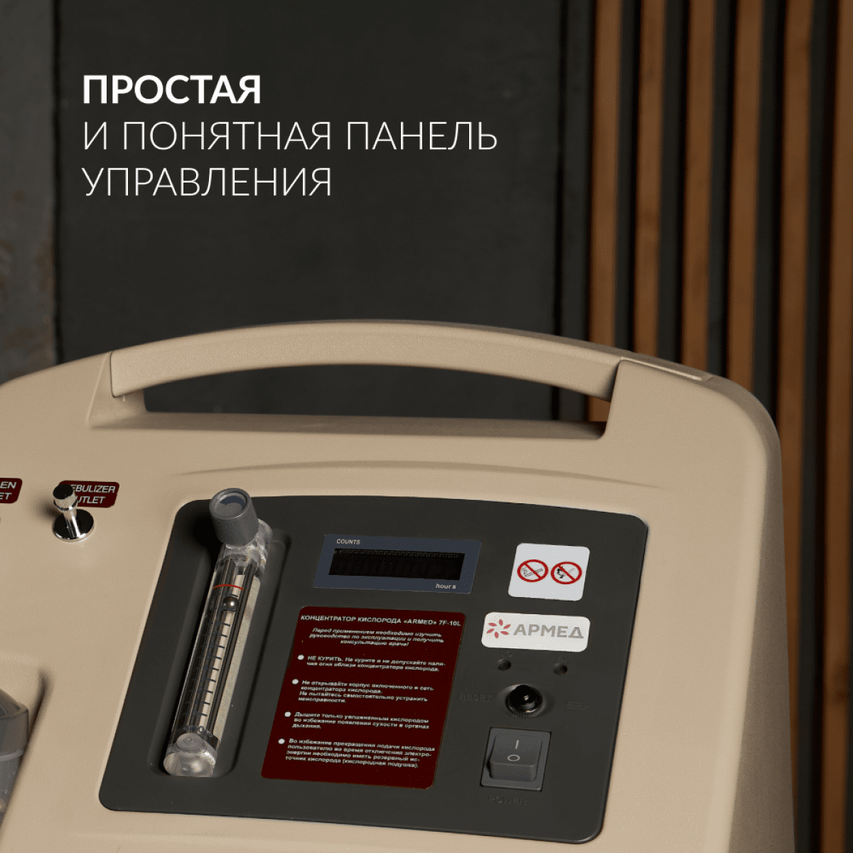 Кислородный концентратор Armed 7F-10L (Армед 7Эф-10Эль) — это современный медицинский аппарат, который производит чистый кислород, выделяя его непосредственно из окружающего воздуха. Устройство предназначено для проведения кислородной терапии в лечебных, профилактических и реабилитационных целях. Прибор обеспечивает высокую концентрацию кислорода до 95%, отфильтровывая азот и примеси без изменения состава воздуха в помещении.