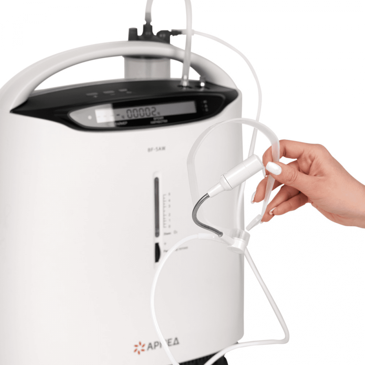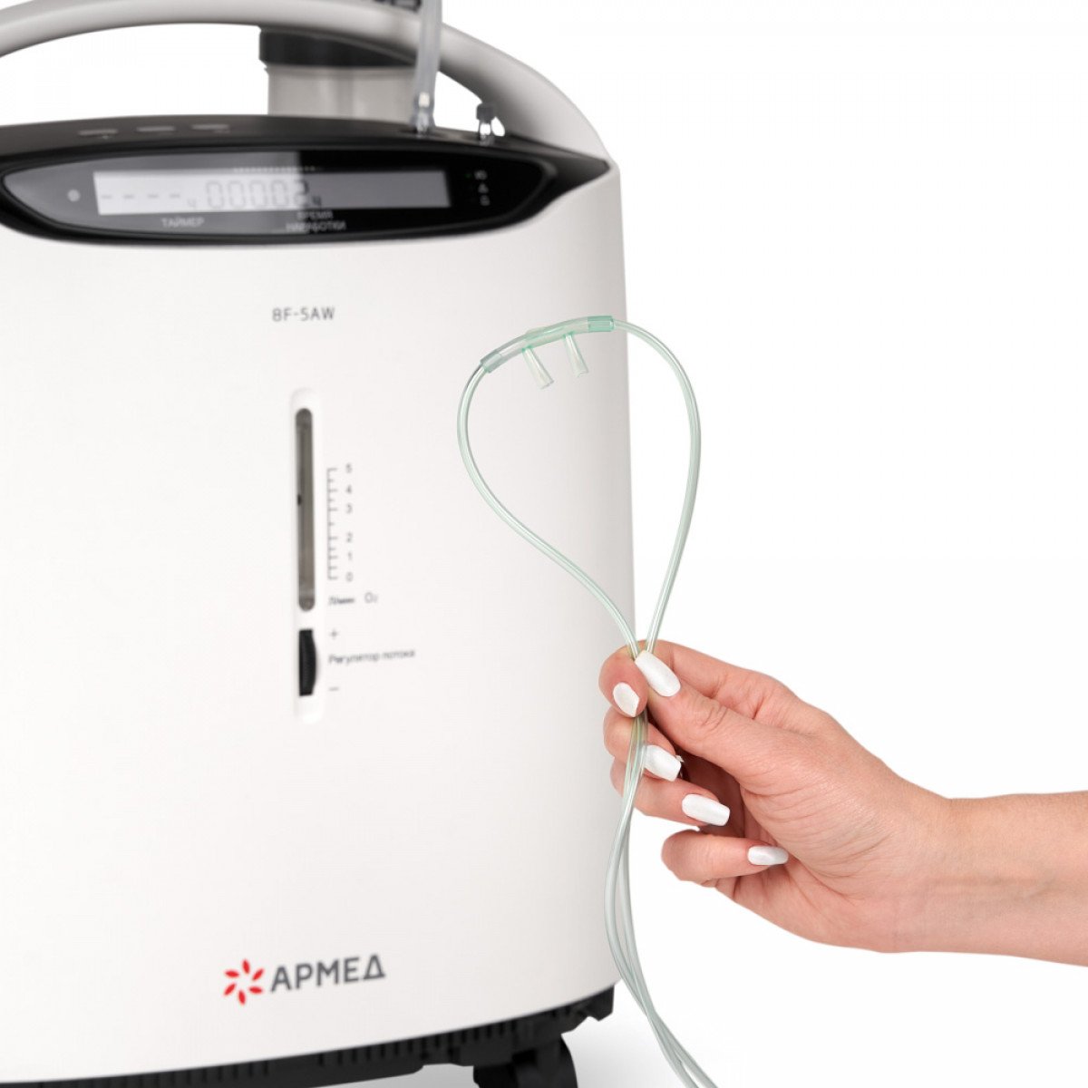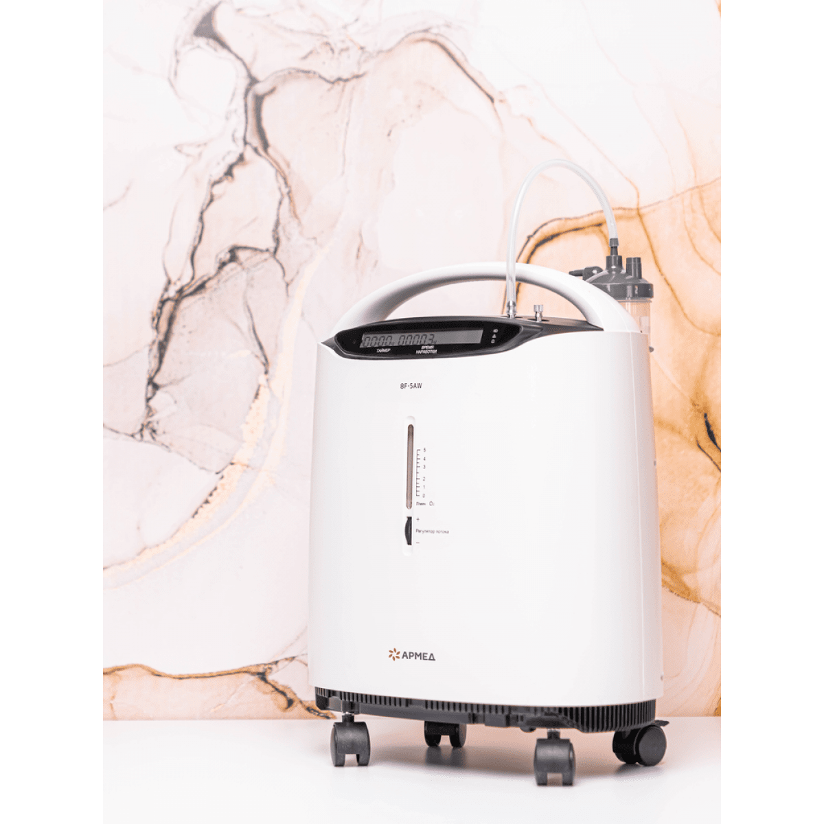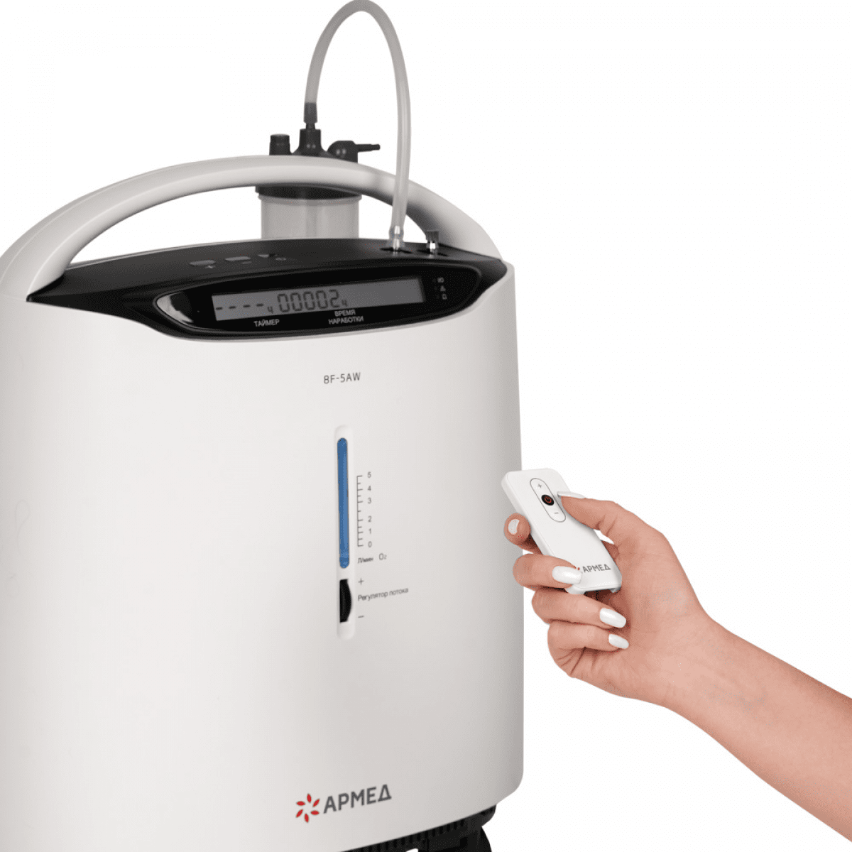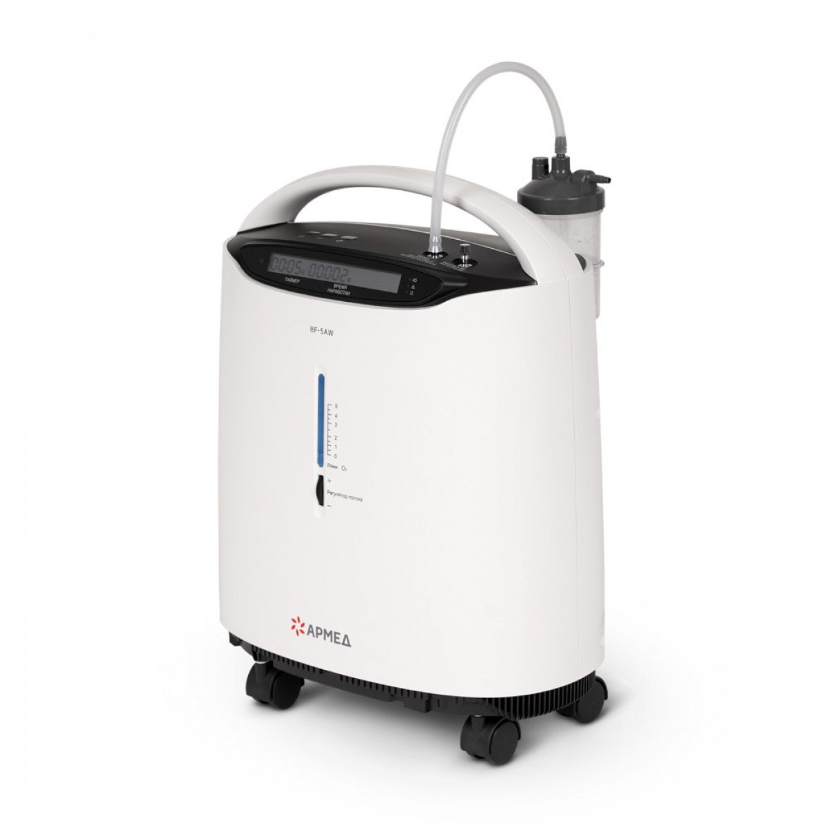 Armed 8F-5AW (Армед) — это компактный и эргономичный, но при этом мощный и высокопроизводительный пятилитровый концентратор кислорода. Может использоваться для проведения длительной кислородной терапии (более 15 часов в сутки), а также для ингаляционного введения лекарственных средств при респираторных заболеваниях.