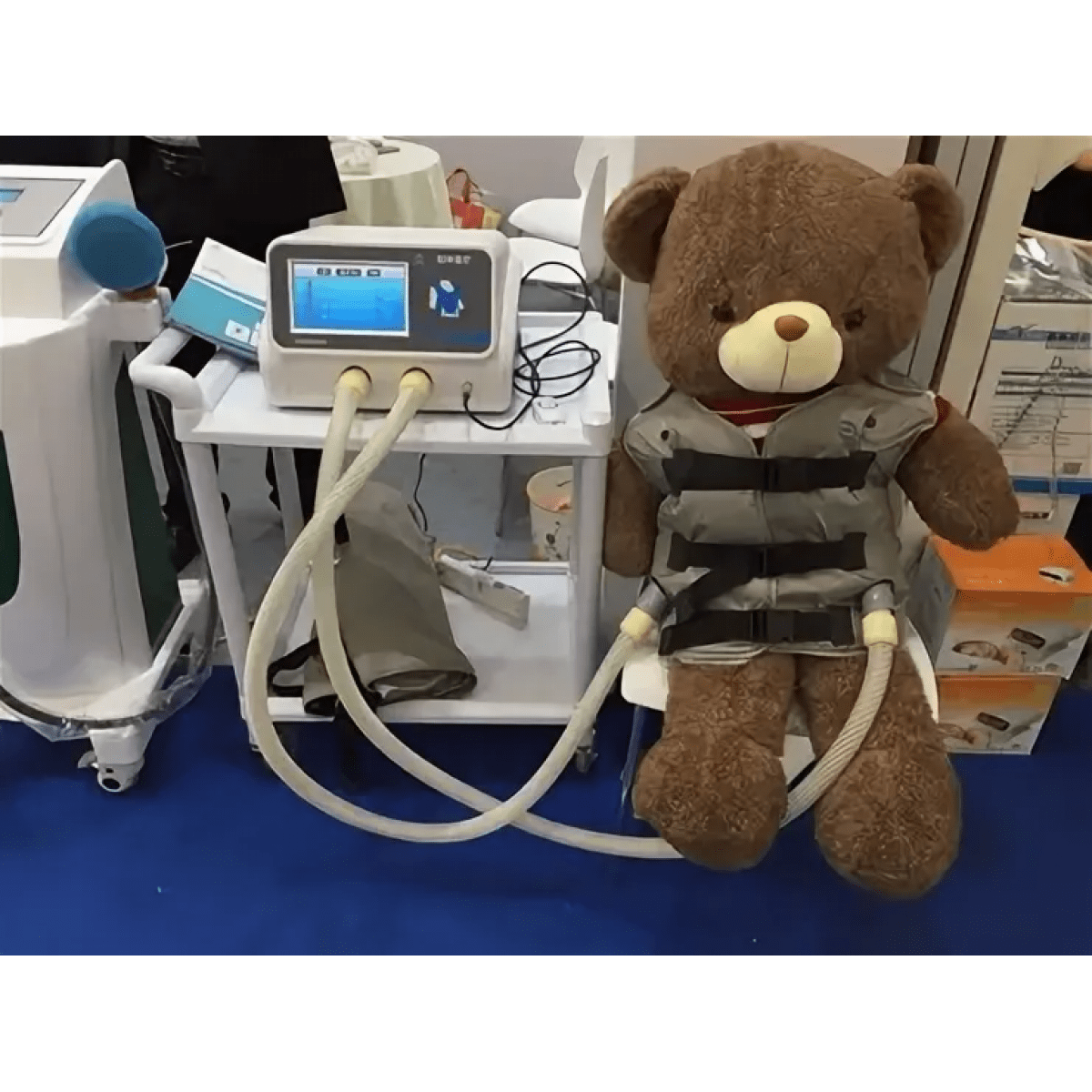 Преимущества модели включают высокую эффективность вибраций, комфортную терапию в любом положении, интуитивно понятное управление и высокий уровень безопасности. Жилет оснащён педалью экстренной остановки, а широкие настройки (частота, давление, время) позволяют подобрать режим для детей и взрослых.