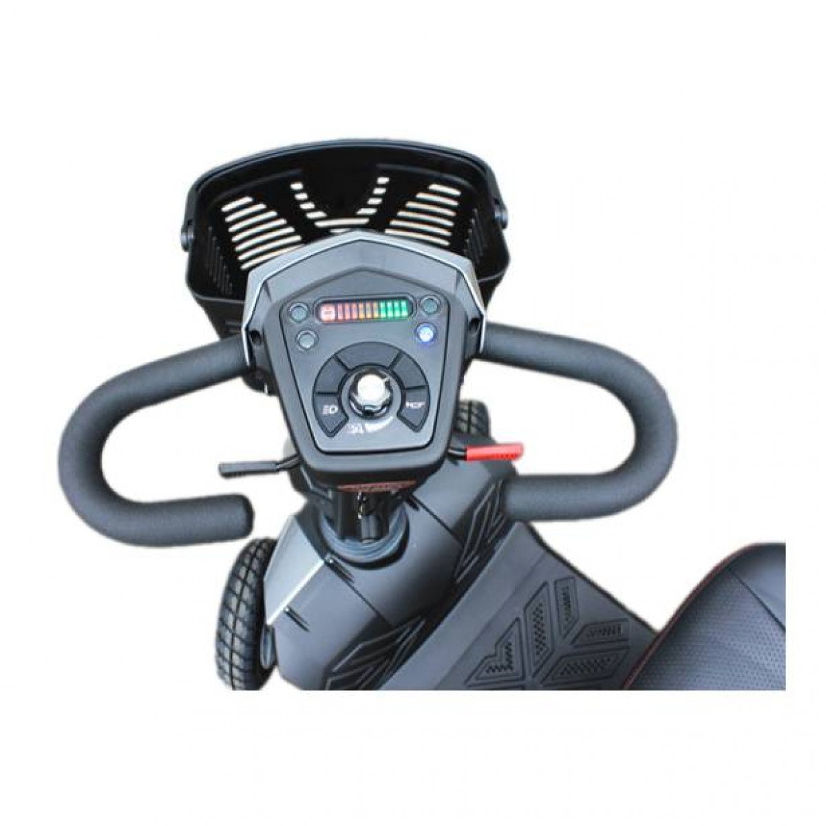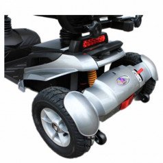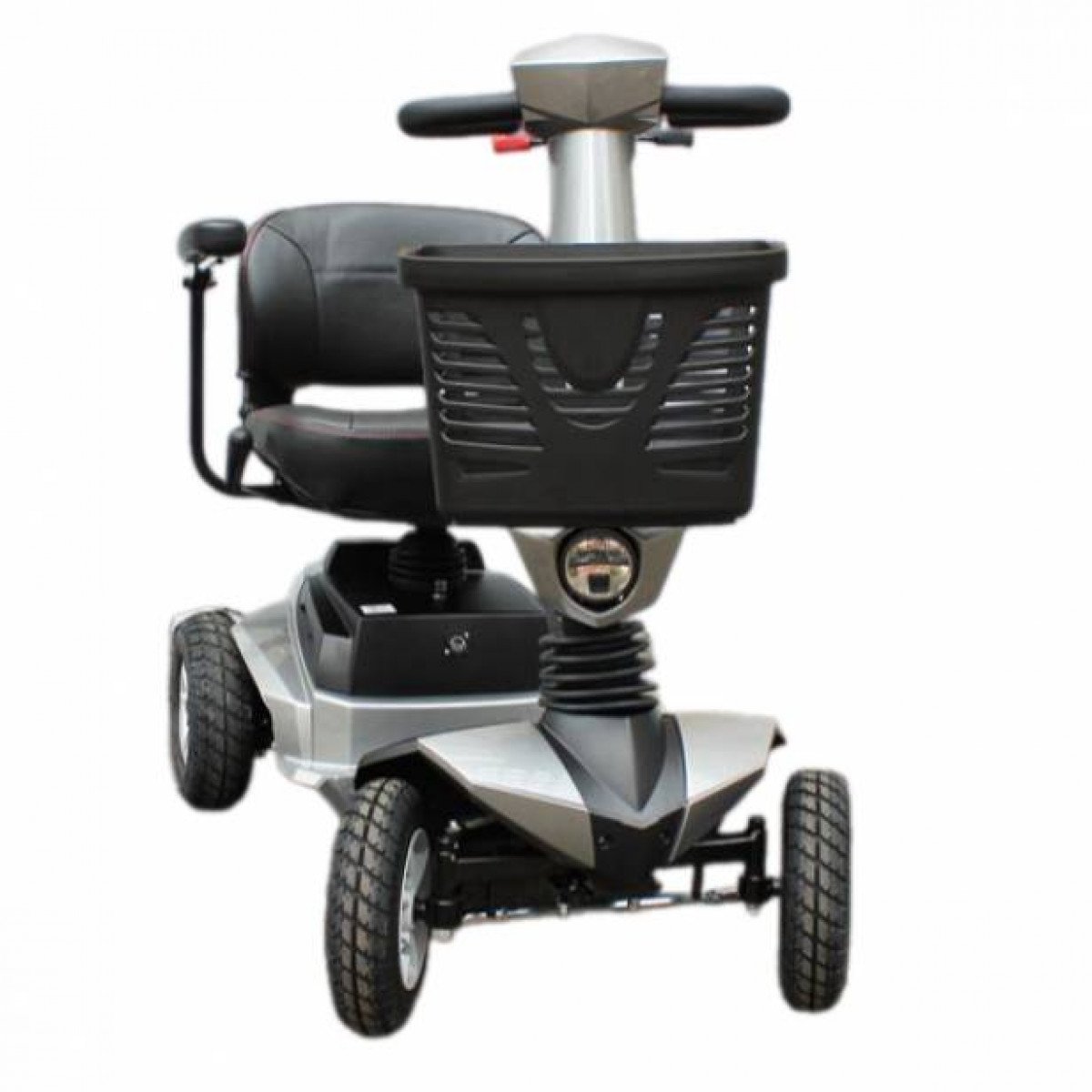 В комплектацию входят съёмная пластиковая корзина для личных вещей и комфортное сиденье с подлокотниками. Подлокотники можно приподнимать, что облегчает посадку и высадку. Кресло обеспечивает устойчивую и удобную посадку, а компактные габариты позволяют скутеру легко маневрировать даже в узких пространствах.