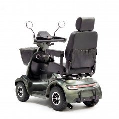 Модель создана для удобства и приятных поездок. В скутер встроены колонки с Bluetooth-подключением — можно слушать музыку или аудио во время движения. Съёмный аккумулятор легко заряжать отдельно, не перемещая сам скутер. Откидные подлокотники облегчают посадку и высадку, а сиденье регулируется по расстоянию до руля и углу наклона спинки, что помогает подобрать удобное положение.