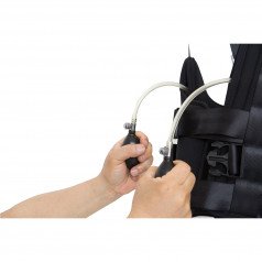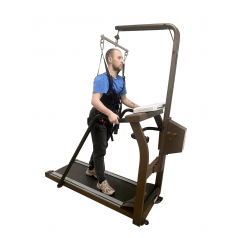 Регулировка подвеса осуществляется вручную — достаточно повернуть рукоятку. Крепление жилета можно установить на высоте 100–170 см от бегового полотна, что удобно для пользователей разного роста и возраста. При необходимости тренировки проводятся и без подвеса: мощный мотор выдерживает нагрузку до 120 кг, сохраняя плавность и устойчивость работы.
